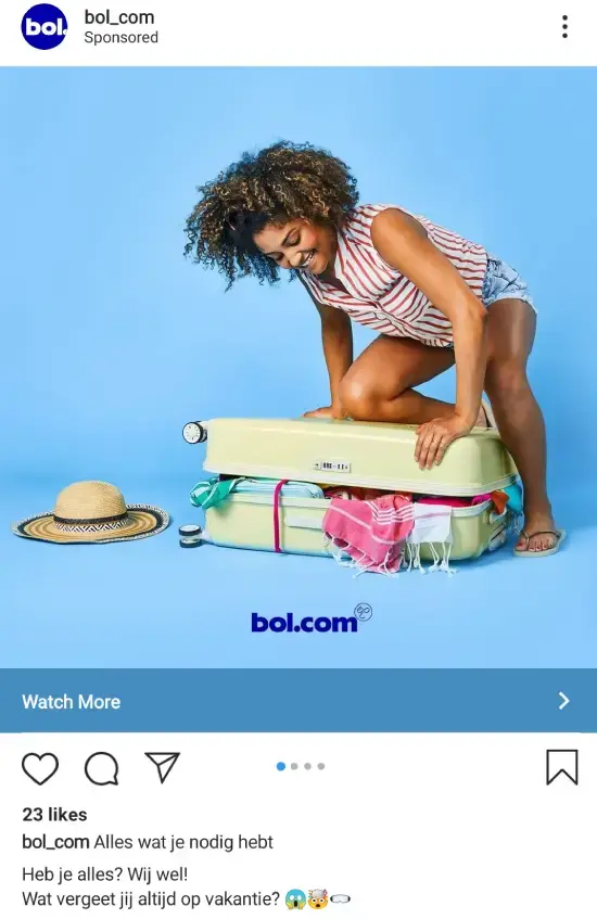 Hieronder is een voorbeeld van een advertentie van Bol.com. Zij gebruiken hier heel slim de vraag: Wat vergeet jij altijd op vakantie?