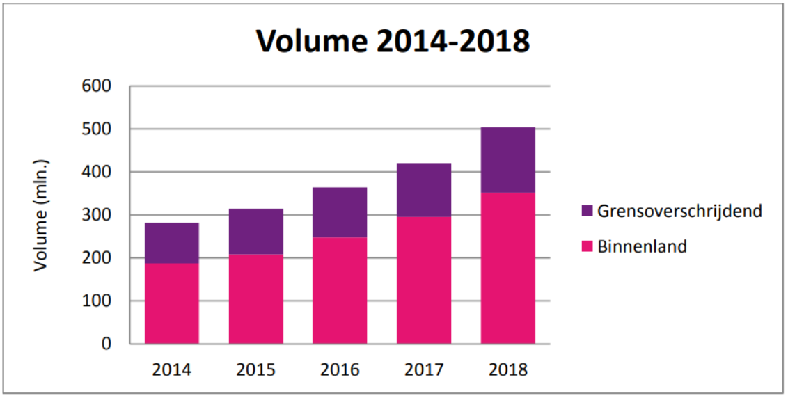 In 2014 werden slechts 280 miljoen pakketten per jaar van A naar B verstuurd in Nederland, in 2018 is het aantal al gestegen naar 504 miljoen. Dit is een stijging van 80% over 4 jaar! (Bron: Autoriteit Consument & Markt)
