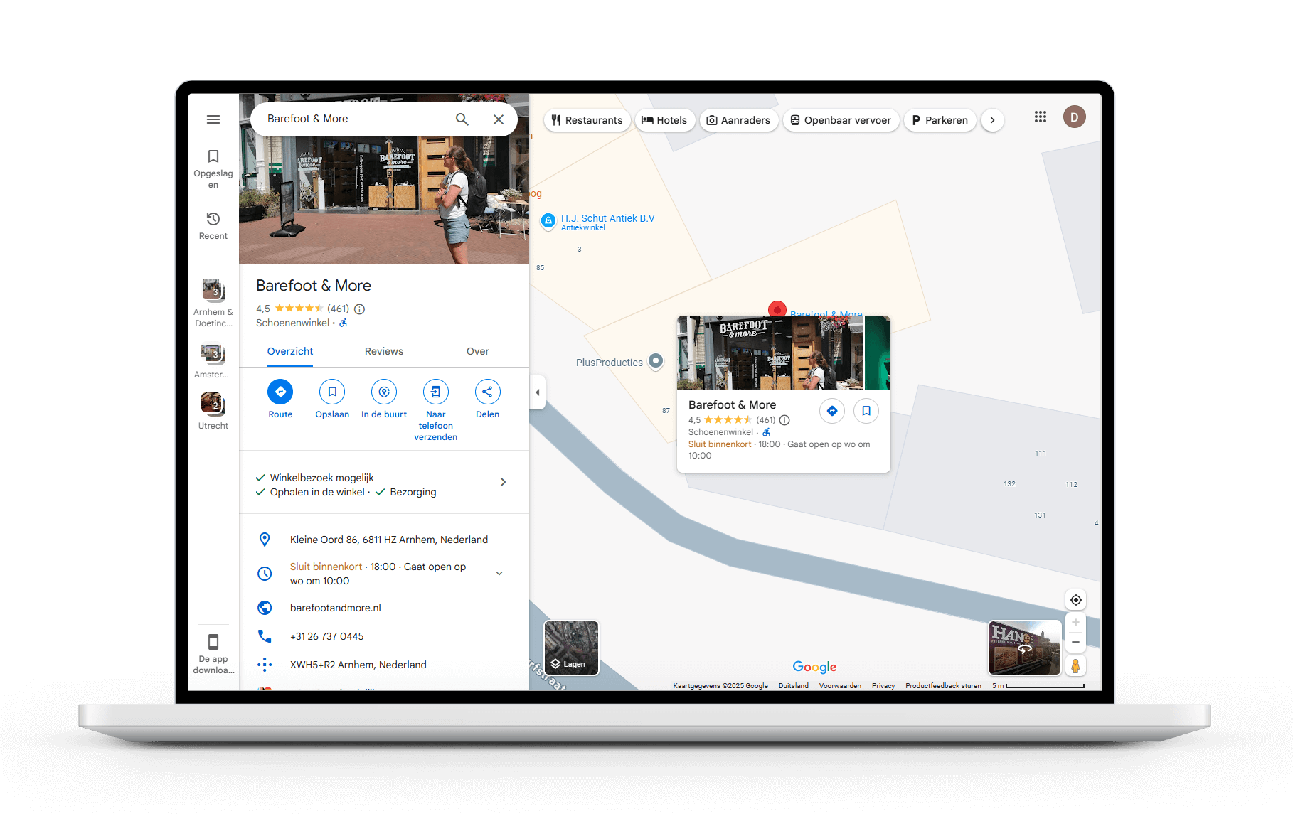 Als Google vaststelt dat de gebruiker naar een lokaal bedrijf zoekt, kan het zelfs een Google Maps-resultaat weergeven.