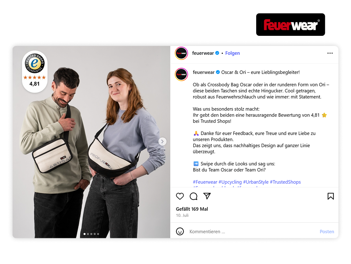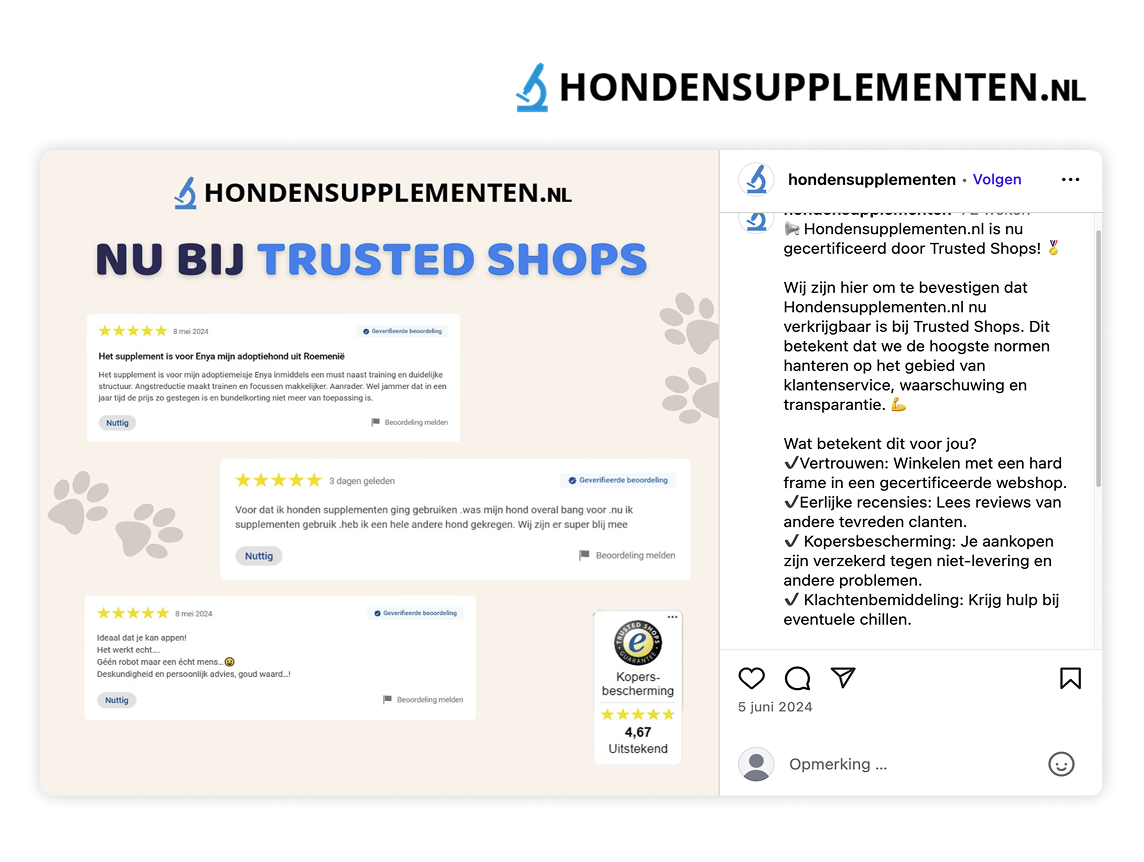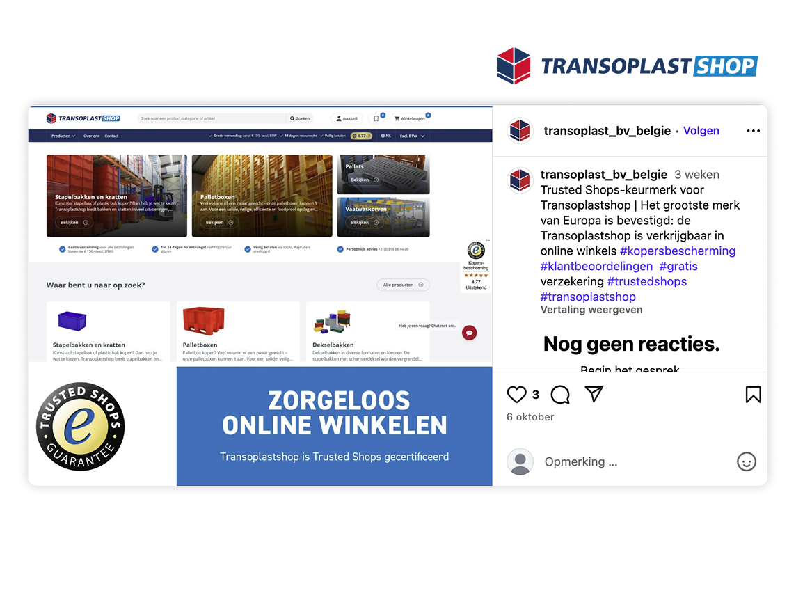 Met vertrouwenselementen zoals het keurmerk of je sterrenbeoordeling straal je direct betrouwbaarheid en kwaliteit uit. Je overtuigt al tijdens het scrollen door de feed en onderscheidt je van neppe webshops.