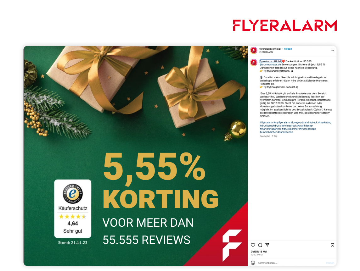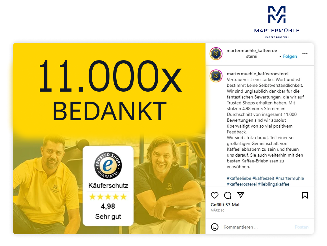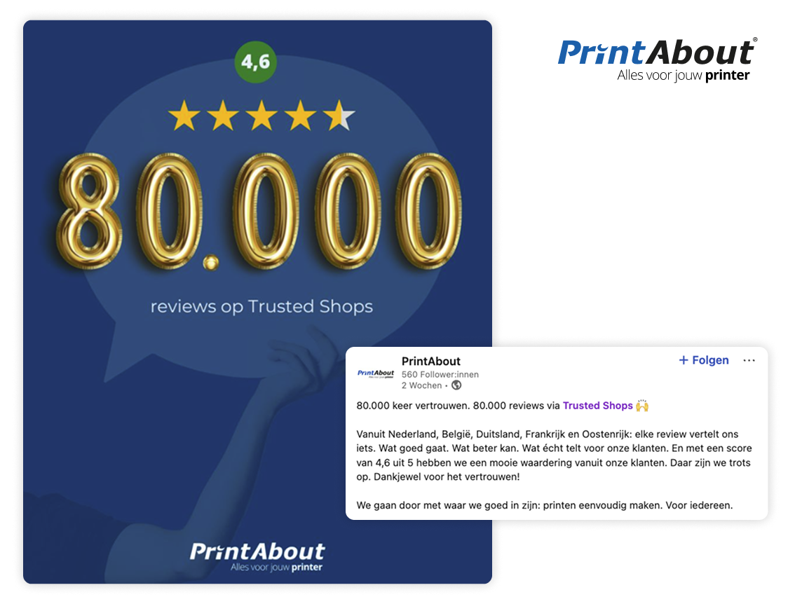 Of het nu gaat om 100, 1.000 of 10.000 beoordelingen, deel je mijlpalen in social media-berichten of reels en betrek je community actief, bijvoorbeeld met een bedankpost of een kleine kortingsactie.